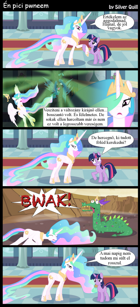 VálaszTörlésMiután a "tudjátokmikor" Celestia még meg is hajolt előtte, azon sem csodálkoznék, ha lenne egy jó kis szerepcsere epizód, ahol ezúttal Twily ugráltatja Tiát. xD
