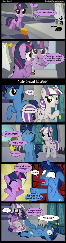 Ja és ha lehetne egy kérésem majd lehetne más Trixies képrepkényeket ki rakni ami komoly és lehetőleg nem az van benne hogy gonosz vagy ugye megint rosszat csinál? :D ez csak egy kérés de gondolom sokak szeretnek háttér pónikat és néznének róla képregényeket mert már sokszor unom hogy állandóan a Mane-6 ot kell nézni! :/
